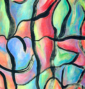 However, I embrace this expressive role of color luminosity as it relates to gestural imagery. My motivation is not to explore disturbed psychological states in the manner that seems to have motivated the early Expressionists such as Kokoschka, Schiele, and Munch, but to gain an understanding of luminous color in relationship to healthful emotion, thought, and spirituality. The play of transparent and opaque areas within a painting reflects this concern for luminous form.
