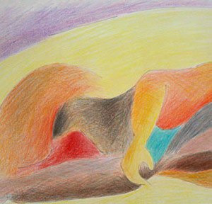A second focus in my work is the expressive role of color. In academic traditions of representing the figure, color tends to be downplayed in favor of monochromatic renderings that focus on the figure’s structure. Charcoal, white chalk, pencil, and occasional washes are the favored media for academic structural studies because these allow for careful renderings that signify physical reality without the potentially distracting effect of expressive color.
