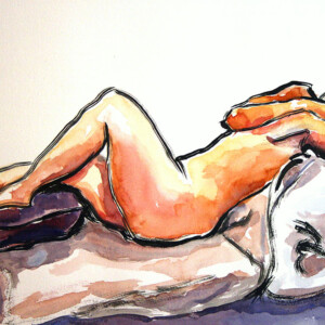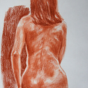 A second focus in my work is the expressive role of color. In academic traditions of representing the figure, color tends to be downplayed in favor of monochromatic renderings that focus on the figure’s structure. Charcoal, white chalk, pencil, and occasional washes are the favored media for academic structural studies because these allow for careful renderings that signify physical reality without the potentially distracting effect of expressive color.